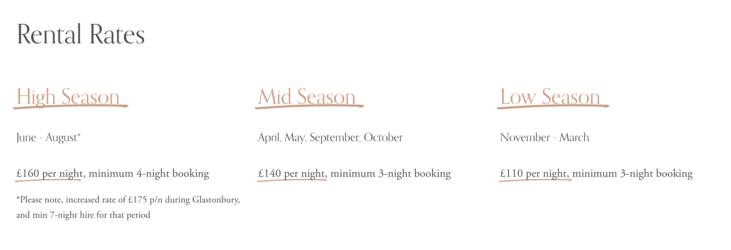Check availability early — especially for summer dates — as peak season bookings fill quickly.